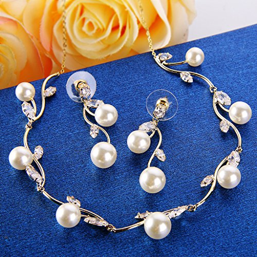 Made of crafted environmental friendly Cubic Zirconia and Simulated Pearls, this jewelry shines with grace and beauty. And the metal surface is of high polished finish.