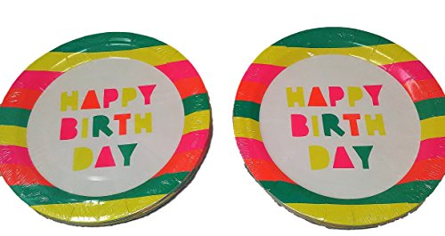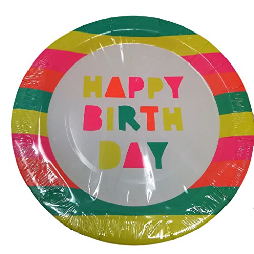 Neon Happy Birthday Party Tableware (32 coated 9 inch plates)