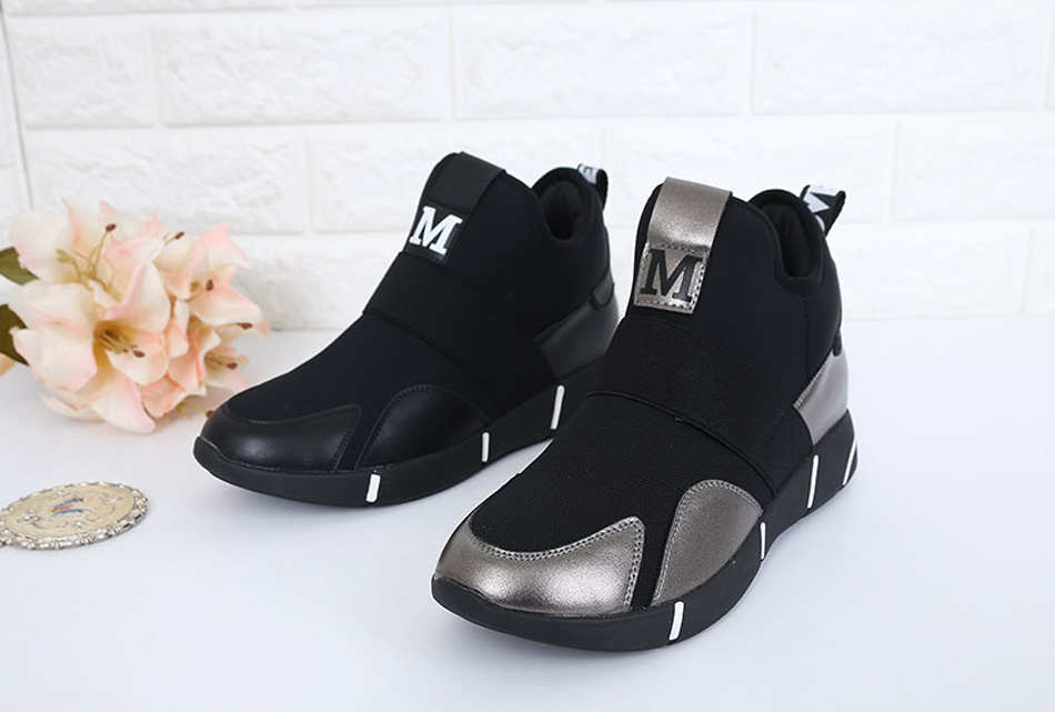 발등과 슈즈뒷축에 밴드 스트랩과 레터링으로