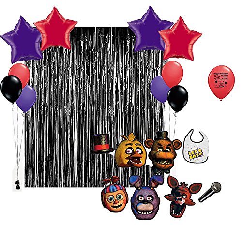 -. Binding : Toy -. Brand : Combined Brands -. EAN : 0747850780965 -. Feature : Strike a scary pose with these Five Nights at Freddy's Photo Booth Props. Featuring eerie designs of Freddy Fazbear, Chica, Foxy and more, these Five Nights at Freddy's party supplies are fun for any Five Nights at Freddy's themed party. / Just stand together with your friends and hold each picture prop by the handle while you all smile for the camera and say "Let's Eat!". Or, simply use these photo booth accessories as decorations to make your party look even scarier. -. IsAdultProduct : 0 -. Label : guaranteeing100percentnow -. Manufacturer : guaranteeing100percentnow -. MPN : 39 Five Nights at Freddy's -. PartNumber : 39 Five Nights at Freddy's -. ProductGroup : Toy -. ProductTypeName : TOYS_AND_GAMES -. Publisher : guaranteeing100percentnow -. Studio : guaranteeing100percentnow -. Title : Five Nights at Freddys Birthday Party Photo Booth Props Balloons Decoration Kit -. UPC : 747850780965