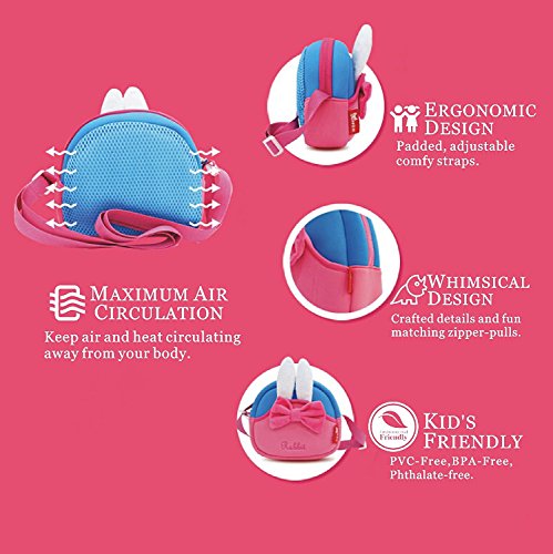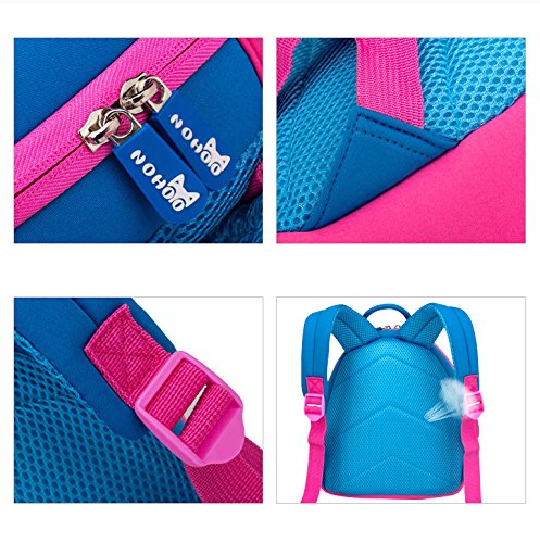 Product Description The toddler backpack is made with waterproof SBR Diving material.The material passes the SGS of the European Union and the American FDA test. It is designed specifically for children, shaped to fit the child's stature. There is a roomy main compartment in the backpack stores the kids's toys, diaper and other stuffs. Also it's made of very lightweight neoprene with ergonomic design, greatly ease the pressure on the shoulders. Just the right size for little students. Features: