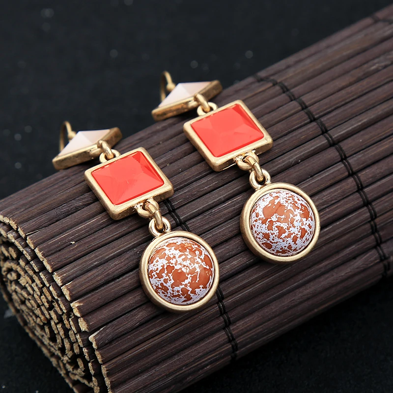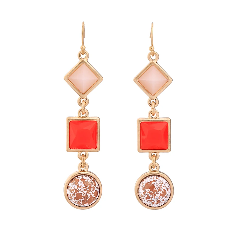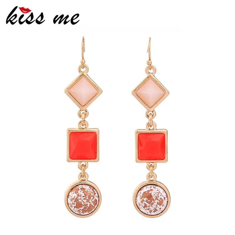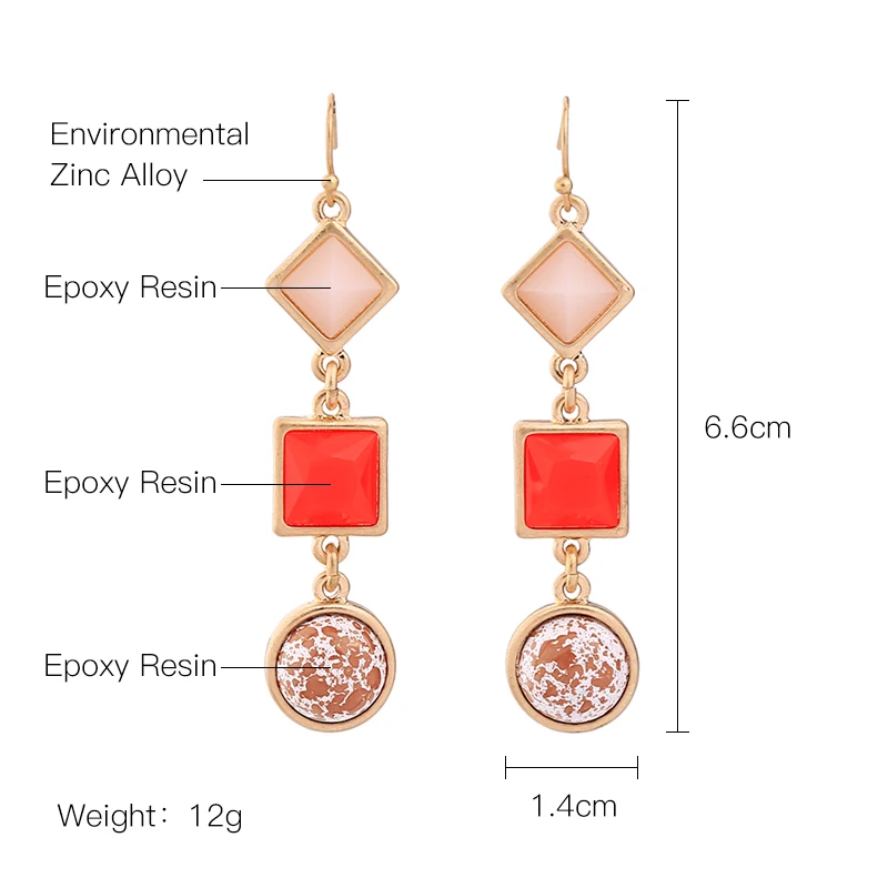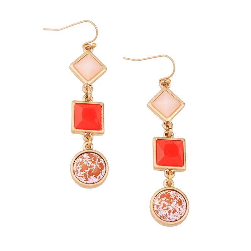 Production name ::KISS ME Cute & Fashion Red Resin Geometric Drop Earrings for Women