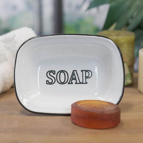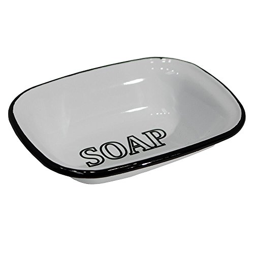 White Enamel Soap Dish with Black Lettering