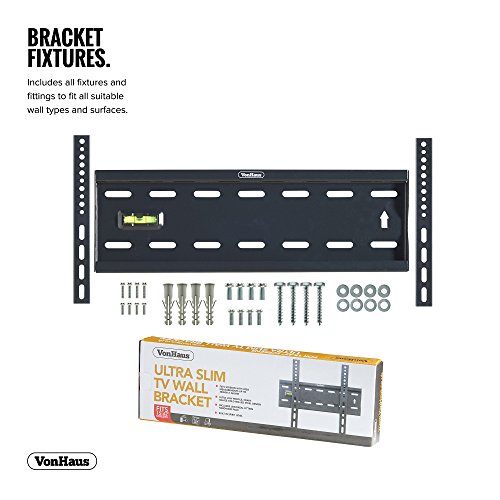 -. Binding : Accessory -. Brand : Designer Habitat -. Color : Black -. EAN : 5060147555141 -. Feature : Ultra low profile: measures just 27mm from the wall / This Bracket is will fit most makes and models of TV within the stated size range (15" to 42") Max VESA Dimensions W300 x H200mm / For wall mounting LED, LCD, 3D and Plasma televisions / Super Strong Load Capacity rated to 88lbs / Quick and easy to install - bracket comes complete with full instructions (In English Only) and fitting hardware -. Label : Designer Habitat Ltd -. Manufacturer : Designer Habitat Ltd -. Model : 05/022 -. MPN : 05/022 -. NumberOfItems : 1 -. PackageQuantity : 1 -. PartNumber : 05/022 -. ProductGroup : Speakers -. ProductTypeName : AV_FURNITURE -. Publisher : Designer Habitat Ltd -. Studio : Designer Habitat Ltd -. Title : VonHaus Ultra Slim TV Wall Mount for 15-42 inch LCD LED 3D Plasma TVs Super Strong 88lbs Weight Capacity