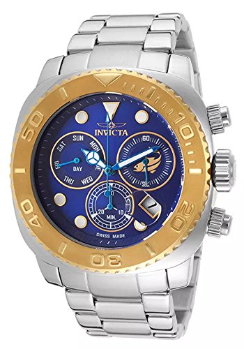 -. Binding : Watch -. Brand : Invicta -. Color : blue -. Department : mens -. EAN : 0886678153237 -. Feature : Swiss quartz movement / Mineral crystal; stainless steel case and bracelet / Chronograph functions with 30 minute, 60 second and day of the week subdials; magnified date window between 4:00 and 5:00 / Blue dial with metallic blue and white hands and gold tone and white hour markers; luminous; unidirectional 18k gold ion-plated stainless steel bezel; screw-down crown and pushers; exhibition case back / Water resistant to 990 feet (300 M):suitable for scuba diving to a depth of 30 meters for up to 2 hours -. Label : Invicta -. Manufacturer : Invicta -. Model : INVICTA-14647 -. MPN : INVICTA-14647 -. PackageQuantity : 1 -. PartNumber : INVICTA-14647 -. ProductGroup : Watch -. ProductTypeName : WATCH -. Publisher : Invicta -. ReleaseDate : 2014-01-10 -. Studio : Invicta -. Title : Invicta Men's INVICTA-14647 Pro Diver Analog Display Swiss Quartz Silver Watch -. UPC : 886678153237