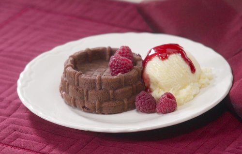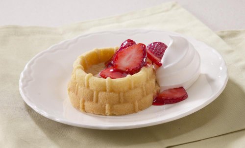 • Cast-aluminum baking pan with 6 basket-shaped shortcake cups
