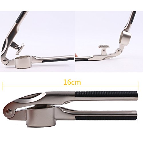 DESIGNED HIGH QUALITY- Garlic press is made from 304 stainless steel, light and strong, with non-slip handle make you more comfortable to use.Every part is very strong, solid, Handle feel very comfortable。Design accord with human body engineering mechanics,you can easily mince unpeeled garlic cloves,When you use it more effort.