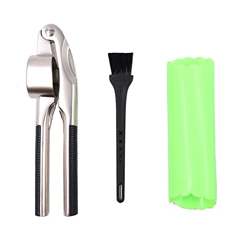 Renashed Garlic Press and Peeler Set. With Bonus Cleaning Brush Easy to Crush the Garlic Cloves Black