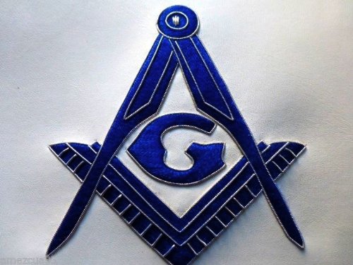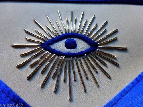 Made by Nayelesis Masonic Supplies Master Mason Apron Made on Synthetic White Leather Embroidered with blue silky threads Silver Bullion around eye and Silver Bullion Threads on Square and Compass Royal Blue Satin Borders Apron Size 14 inches high by 16 inches wide, We Guarantee Very high Quality Apron Embroidery Work And Tailoring, Apron Made with Adjustable Belt and snake hook