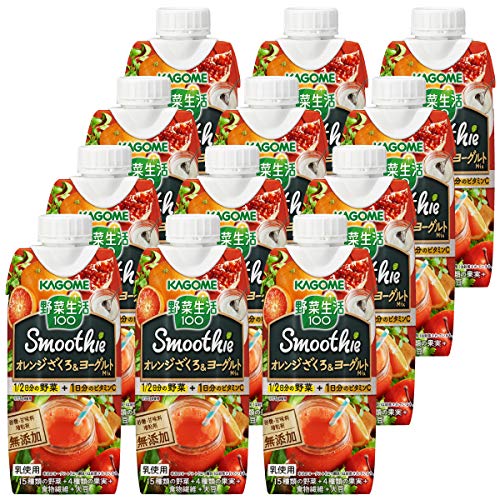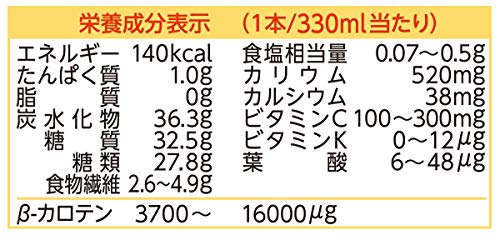 原材料:野菜(にんじん、ピーマン、ケール、ほうれん草、アスパラガス、クレソン、パセリ、かぼちゃ、レタス、キャベツ、ビート、だいこん、はくさい、たまねぎ、セロリ)、果実(りんご、オレンジ(ブラッドオレンジ35%)、レモン、ざくろ)、食物繊維、はっ酵乳、殺菌発酵豆乳、寒天/香料、安定剤(ペクチン)、クエン酸、ビタミンC、(一部に乳成分・オレンジ・大豆・りんごを含む)