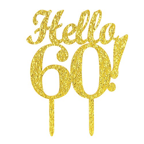 Gold Hello 60 Cake Topper - Happy 60th Birthday / Wedding Anniversary / Retirement Party Decoration
