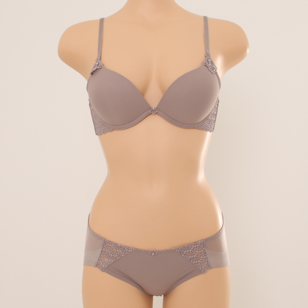 와이어 압박감을 없앤 저중심 라인 설계와 기하학적 무늬의 케미컬레이스가 세련미를 연출해줍니다.