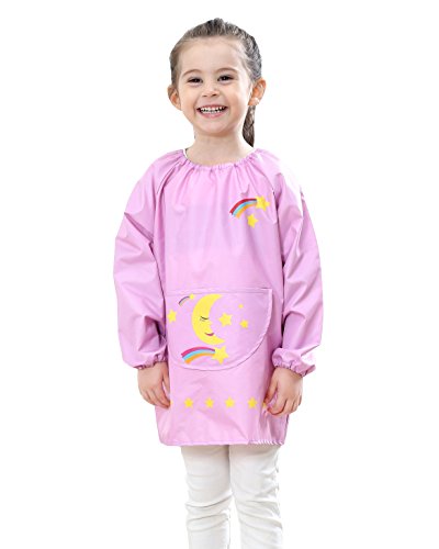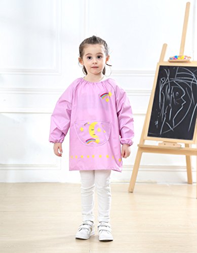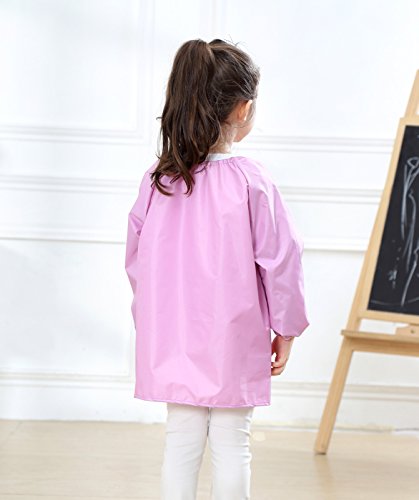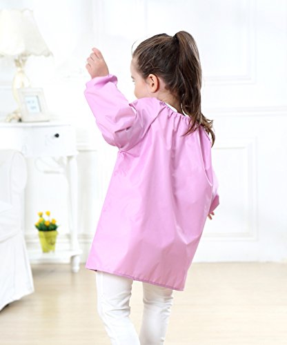Effective protection design - popular design has long sleeves for best protection and pullover design for convenient use. Besides, the front pockets helps children to hold water pen, paint, snacks and paper towels and other items.