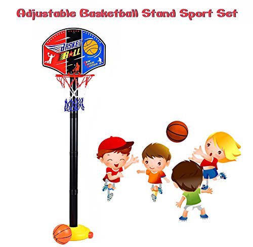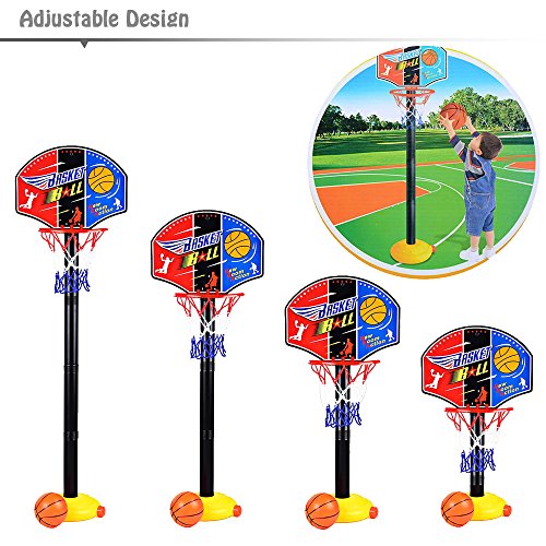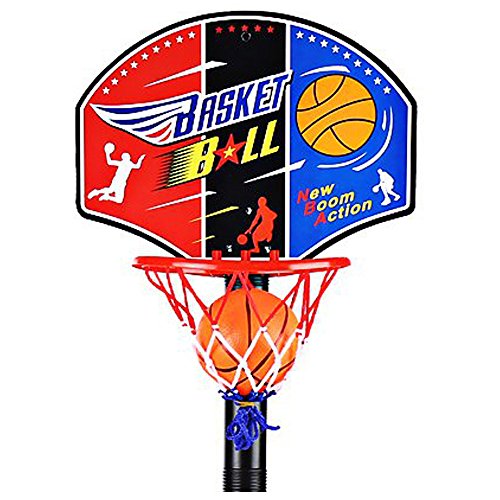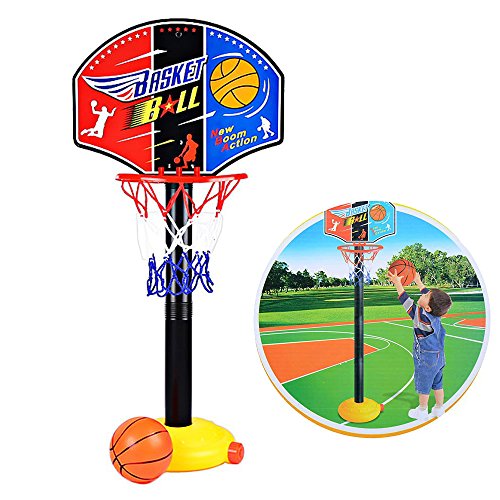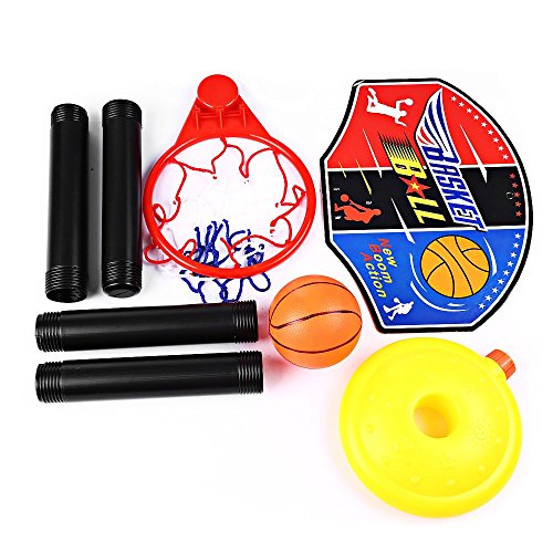 Studio : Shenzhen Qiyuying Dianzi Shangwu Co.,Ltd Publisher : Shenzhen Qiyuying Dianzi Shangwu Co.,Ltd Binding : Toy Product Description Feature: mini size for kids under 3 years. Backboard Size: 13.38" Base Size: 8.27"*1.96" Type: Stand Base Material: Plastic Rim Material: Plastic Backboard Material: Plastic This basketball hoop set comes with 4 poles, stand height can be easily adjusted from 0.81 to 3.3 feet for growing children. As children grow and their basketball skills improve, raise the height to increase the challenge. Allowing small kids of various ages to enjoy shooting hoops and slam dunking. Grows with your child from small to tall and from beginner to pro. Lightweight and easy to carry everywhere, you can add sand and water to the base to increase its weight to keep stable.