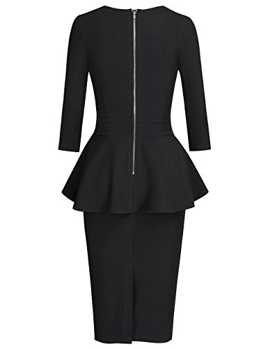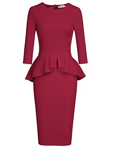 Crew Neck 3/4 Sleeve Peplum Knee Length Dress