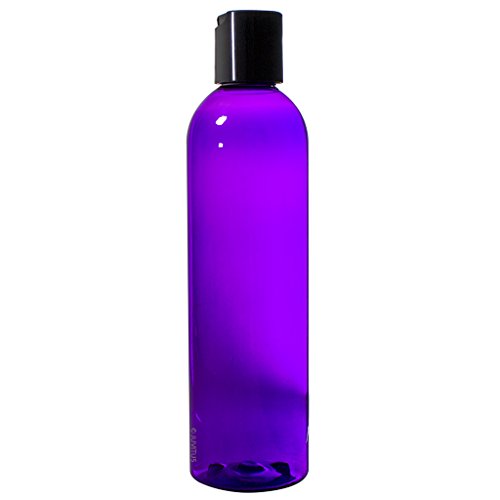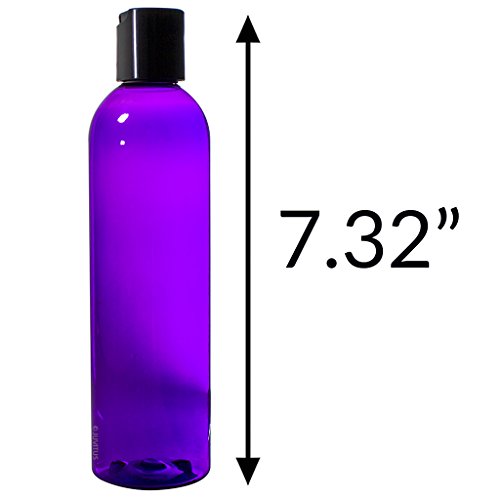 8 oz Purple Slim Plastic PET Refillable Bottles with Black Disc Cap Dispenser (6 pack) + Labels