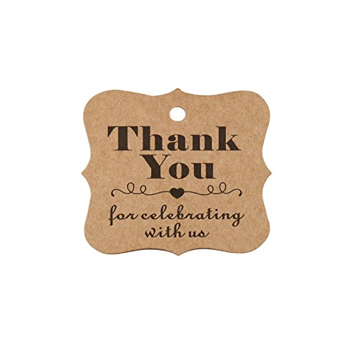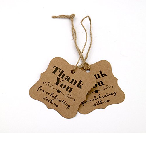 Baby Shower Tags for Favors,Thank You For Celebrating With Us Paper Gift Tags ,100 Pcs Kraft Thank You Tags For Wedding Party Favors, Valentine's Day Tags with 100 Feet Natural Jute Twine (Brown)
