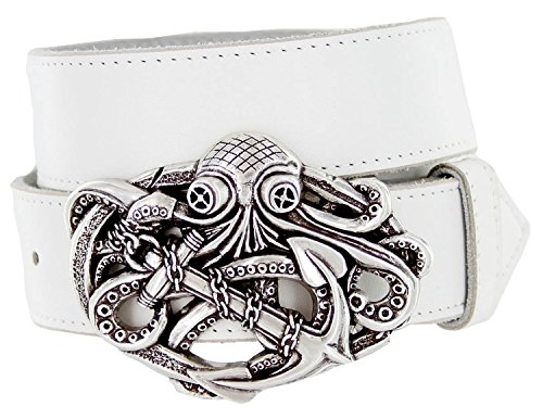 Binding : Apparel Product Description Punk Pirate Octopus Boat Anchor Skull Pirate design buckle paired with our high quality leather strap in either Black, Brown, Tan, or White. Looks cool with any outfit and adds a flashy touch. Sizing: Measure Around where you wear the belt, with your pants on, and order that size. 0