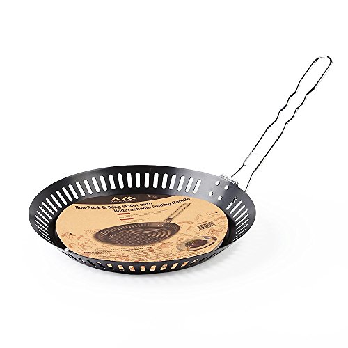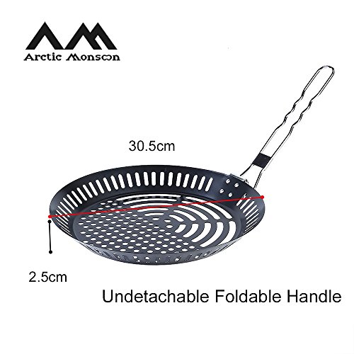 Grilling Skillet, Arctic Monsoon, Nonstick Grill Accessories with Undetachable Foldable Handle, for Grilling Smaller Pieces of Food Like Vegetables and Meat Cubes, Black