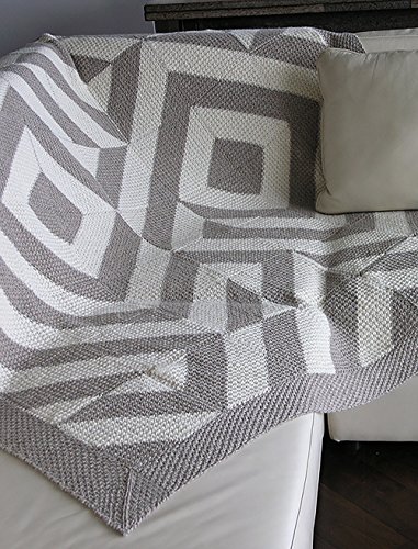 - Sizing: Approximately 152 cm x 152 cm (60" x 60"), including borders. Each bi-color moss stitch block measures 8x8 inches and each moss stitch border measures 3x55 inches when slightly stretched, fitting along one edge of the blanket.
