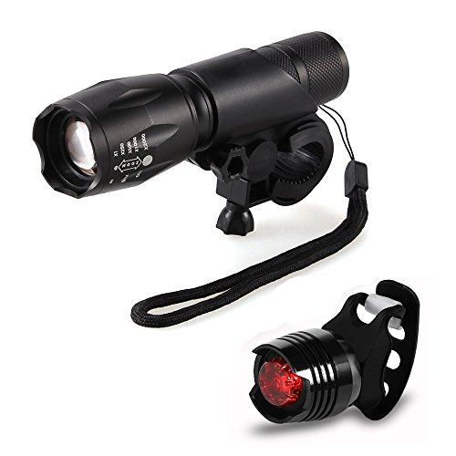Best Bicycle Lighting Set, The best partner for your safe cycling. Accompany your site, protect your safety when you drive in the night on the road. Bicycle lights: focus adjustable, 3 kinds of lighting mode, high brightness / low brightness / flashing Taillight: 3 kinds of lighting mode, high brightness / fast flashing / slow flashing. The required size of mount is adjustable, suitable for road bike, mountain bike, road bike and other all kinds of bicycle. The bicycle torch can be used with 3 AAA batteries or a group of 18650 lithium battery. (Battery Not Included) Note: ? Please use a 18650 battery with the battery housing, so that 18,650 lithium batteries can be stabilized in the flashlight. ? Two CR2302 button batteries are used for the taillight ? Before using for the first time, please remove the insulating film between the two batteries in the rear light. To change the operating mode, carefully press the light-shade of the taillight. ? If you are using 18650 battery pack, please use the battery holder (plastic extension tube). It can avoid contact errors. Also, please update your batteries regularly to keep safe cycling. Product includes: Bicycle flashlight X1 Cover of flashlight X1 Bicycle backlight X1 Battery housing X1 Bracket for bicycle flashlight X1 Holder of AAA battery pack X1(Battery Not Included) 0