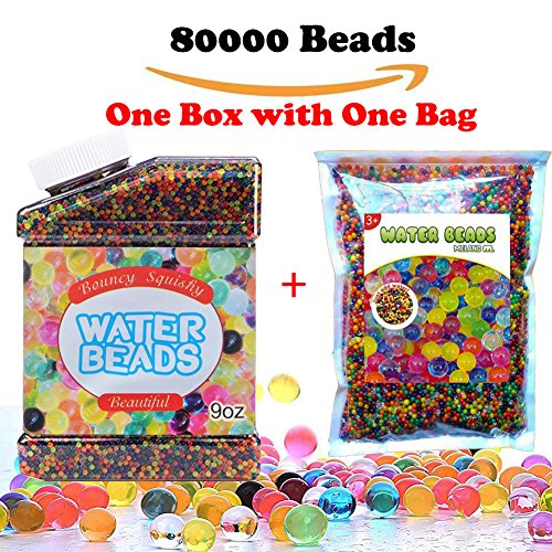 - The package include one box and one bag,almost 80000 water beads,colorful like rainbow with 6 colors