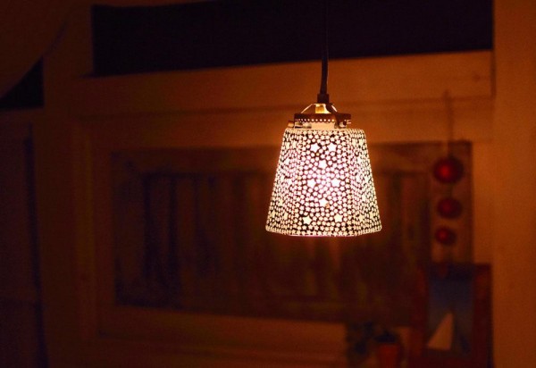 | 石膏にガラスでモザイク模様を描きました。点灯時と消灯時で違った表情が楽しめます。※ハンドメイドのため、ガラスやビーズの色・配置等は少しずつ異なります。なお、ビーズの色味は製品により多少変わる場合があります。 |