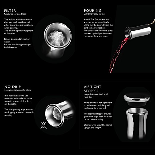 -. Feature : Decants and aerates instantly / Airtight stopper / Easy pouring