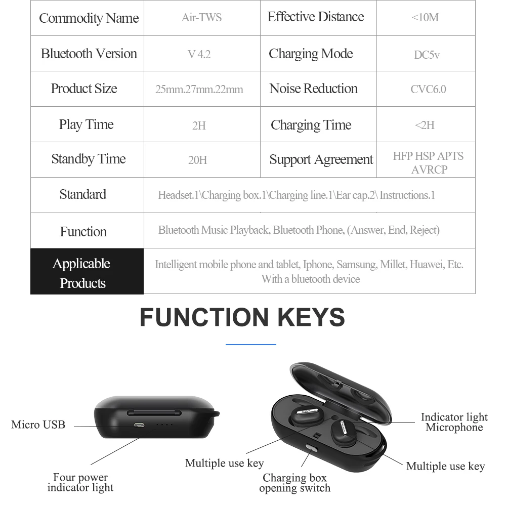 Function 1:Stereo Bluetooth Earphone