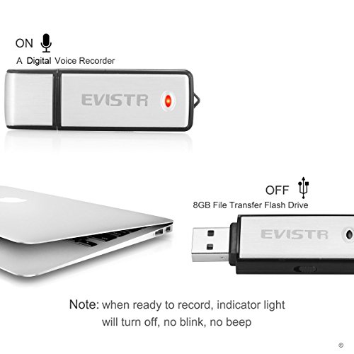 Digital Voice Recorder, EVISTR Simple USB Voice Recorder 8GB Flash Drive Portable Handy Design Sensitive Microphone Dictaphone with Landyard