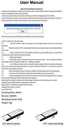 - 8GB Flash Drive: turn it off, this small voice recorder could be used as handy U Disk, help you transfer your files in your classroom, study, office, use it like a normal external flash drive; large storage, could keep up to 150hours recording files, so enough room could replace your ordinary U Disk