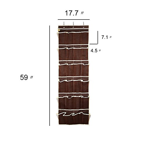 -. Feature : Stylish and classic appearance with 24 pockets design; built with high-performance materials and quality manufacturing non-woven fabric, we ensure you a solid daily use in your household. / 3 over the door steel hooks hang on standard door quickly and easily, it making your life more easier and organized. / Space saving over the door hanging shoe storage, optimum pocket size for storing shoes, toys, and other accessories. Dark Brown - Will Not Show the Dirt. / Coming with hanging shoe organizer and 3 steel hooks, a handy tool for your shoe storage. Press the add to cart button now and get one for yourself!