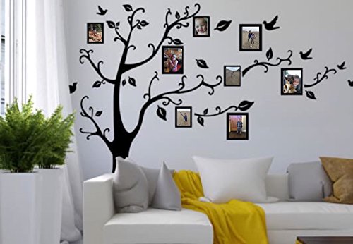-. Feature : Size: Approximately 8ft 2in (Lenght) x 6ft 7in (Height) / Includes 8 frame decals. Frames can be placed horizontally or vertically and can fit 5x7 & 4x6 photos. / Have the option of positioning decal with branches to the right or with branches even on both sides of the tree. / Words, frames, birds, leaves and branches are separate so you can choose how to position the decal. / Color: Black