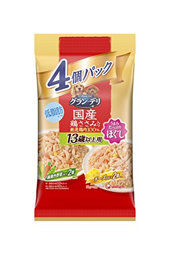 原材料:●緑黄色野菜入り:肉類(鶏胸肉、鶏ササミ)、野菜類(ニンジン、グリーンピース、スイートコーン)、しょうゆ、増粘多糖類、塩化カリウム、酸化防止剤(EDTA-Ca・Na)、ビタミン類(B1、B2、B6、B12、C、E)、グルコサミン、コンドロイチン●緑黄色野菜・チーズ入り:肉類(鶏胸肉、鶏ササミ)、野菜類(ニンジン、グリーンピース、スイートコーン)、チーズ、しょうゆ、増粘多糖類、塩化カリウム、酸化防止剤(EDTA-Ca・Na)、ビタミン類(B1、B2、B6、B12、C、E)、グルコサミン、コンドロイチン
