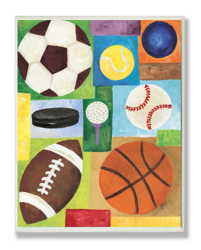 The Kids Room by Stupell Multi-Sport Rectangle Wall Plaque, 11 x 0.5 x 15, Proudly Made in USA