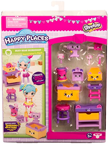 -. Binding : Toy -. Brand : Shopkins -. Color : Multi Color -. EAN : 0630996564790 -. Feature : The decorators pack contains: 3 medium petkins, 8 small petkins, 4 mini petkins, 2 tiles and a catalog. So many things to help you add those finishing touches to a room! There are 1000s of ways to decorate and play! -. Label : Moose Toys Import -. Manufacturer : Moose Toys Import -. Model : 56479 -. MPN : 56479 -. NumberOfItems : 1 -. PackageQuantity : 1 -. PartNumber : 56479 -. ProductGroup : Toy -. ProductTypeName : TOYS_AND_GAMES -. Publisher : Moose Toys Import -. ReleaseDate : 2017-08-01 -. Size : 1.77'' x 7.87'' x 9.84'' -. Studio : Moose Toys Import -. Title : Happy Places Shopkins S3 Decorator Pack - Busy Bear Workshop -. UPC : 630996564790 -. Warranty : No Warranty