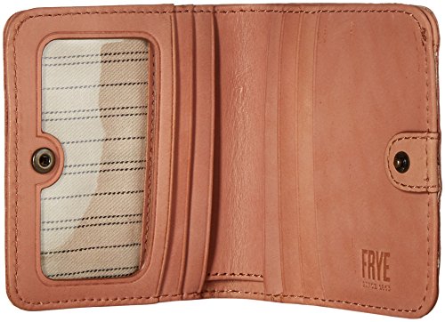 Studio : FRYE Publisher : FRYE Binding : Apparel Product Description Founded in 1863, Frye is committed to creating iconic leather goods, using the best materials, craftsmanship and design. This antique pull up leather small snap wallet from our best selling Melissa collection, is the perfect wallet from Frye. Details: snap closure, 4 card slots 1 ID sleeve, 2 bill sleeves, back zipper change pocket. Measurements: 4.75’'W X 4'H X .75'D 0