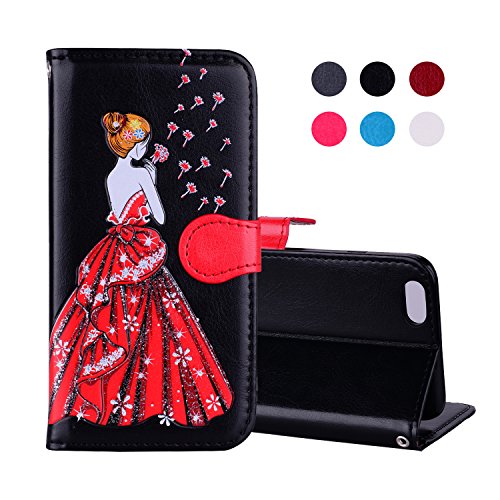 iPhone 6S Case,iPhone 6 Case,DAMONDY Bling Glitter Girl Back View Stand Luxury PU Leather Wallet Case Flip Cover Built-in Card Holders for iPhone 6S / iPhone 6-black