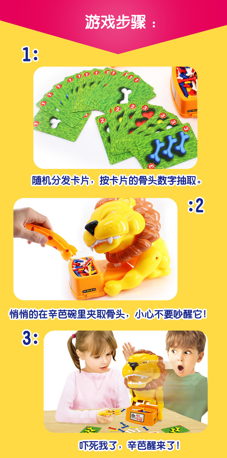 No.3 players randomly pick a card, the number of bones on the card, the player on the need to use cat claws tweezers to steal the number of small dog bowl bones (if the card is blank, you do not need to bones). Then, turn to the next player, and so on. Remember, the action should be light, if you do not care too hard to touch the bowl of the pedal, then the vicious dog will suddenly flock to you.