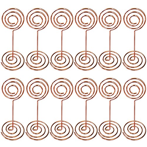 12 Pcs Photo Holder Stands Wedding Number Table Holders Place Memo Card Holders Heart Shaped for Wedding Party Home Office Decoration, Rose Gold color