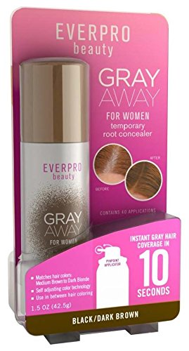 Studio : Mana Products, Inc Publisher : Mana Products, Inc Binding : Misc. Product Description Gray Away Root Concealer- Dark Brown Instant gray root touch up spray. Never let them see your roots! Extends life of hair color. Matches hair colors- Black to deep medium brown. Washes out with shampoo, is temporary and has no dyes. Won't flake and matches your natural hair color. Perfect to use between hair colorings. Each spray can has approximately 40 spray applications. Features: Won't flake Temporary- washes out with shampoo No dyes Use between hair colorings Matches your natural hair color 0