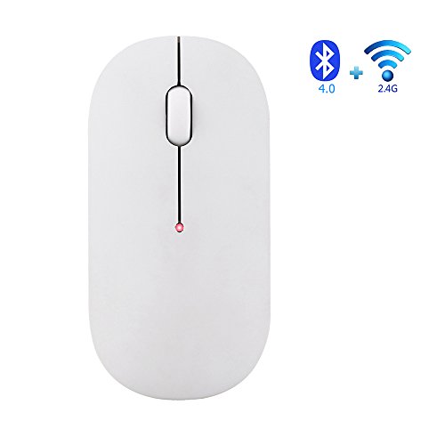 -. Feature : [One Mouse,Two Modes]: This creatively and conveniently designed mouse,can work on TWO DEVICES, connecting one device through Bluetooth and the other via RF 2.4Ghz. If you are annoying that you have to own one Bluetooth mouse and one 2.4G wireless mouse separately for your laptop and tablet, or laptop and laptop, or laptop and desktop, this mouse is your ideal choice. You could intelligently switch the mode between both devices just by a click. / [Comfortable design]:Ergonomic design,perfect for All Hands,fits comfortably in your hand and the buttons are perfectly located for your office and gaming needs, avoids hand fatigue for long term use. USB Nano Receiver can be stored in the back of the mouse. / [Portable and Pocket Size]:Slim and light weight design make it perfectly for travel, easy to put in your laptop bag or pockets. Meanwhile, you can operate on two computers only with one mouse. / [Wide Compatibility]:Bluetooth mode works with Windows/ Android/ MAC OS system. No code required and intelligent connectivity. 2.4G mode works for laptop, desktop, smart TV and any device with USB port.(NOTE:BLUETOOTH works ONLY with 4.0 and ABOVE VERSION.) / [100% Customer Satisfaction]:30 days money-back and 12-months guaranty, when you are not satisfied with our product or you have any question, please contact with us to get a after-sale service, we will give you a satisfied response within 12 hours.