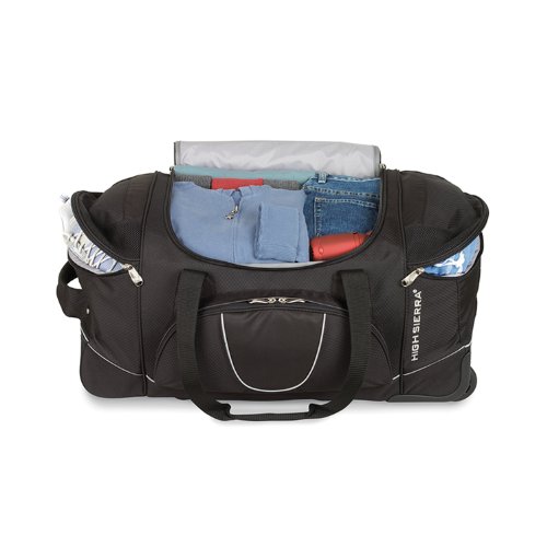-. Binding : Apparel -. Brand : High Sierra -. ClothingSize : One Size -. Department : unisex-adult -. Feature : It's two bags in one Use it as a wheeled duffel or wear it like a backpack. / Hidden backpack straps are stored behind the zippered padded back panel. / Main compartment with easy-access U-shaped opening. / Zippered front accessory pocket and two top-loading end compartments. / Oversized, skate-style wheels are inset into corner-mounted wheel housings. -. Label : High Sierra -. Manufacturer : High Sierra -. MPN : AT2501 -. NumberOfItems : 1 -. PackageQuantity : 1 -. PartNumber : AT2501 -. ProductGroup : Sports -. ProductTypeName : BAG -. Publisher : High Sierra -. Size : One Size -. Studio : High Sierra -. Title : High Sierra A.T. Gear Ultimate Access 30" Wheeled Duffel