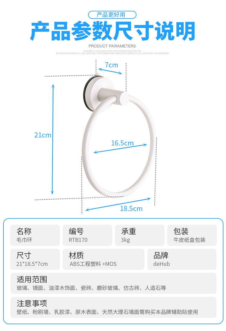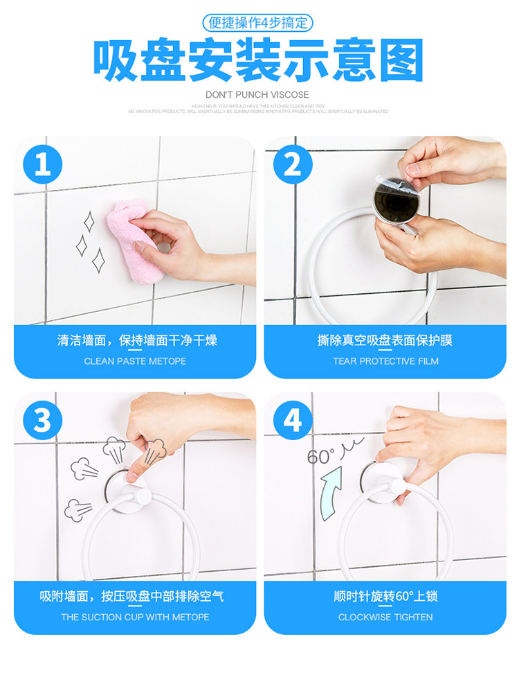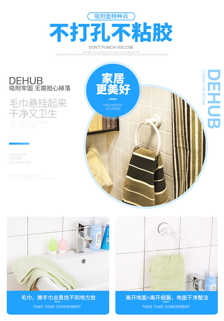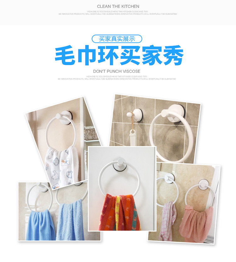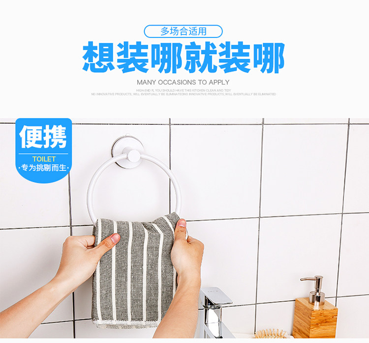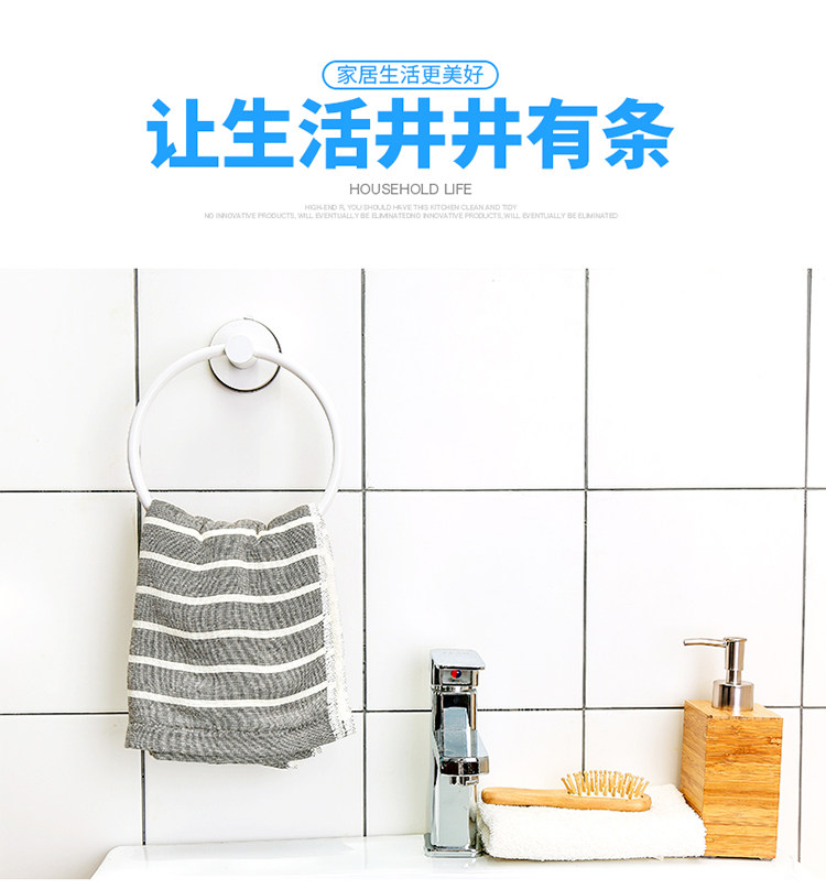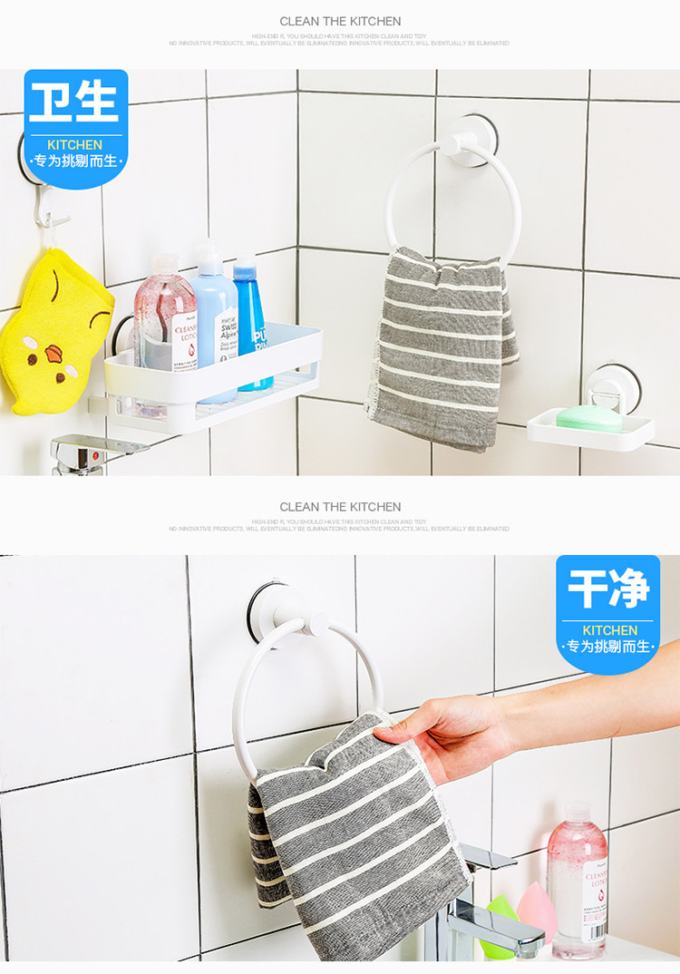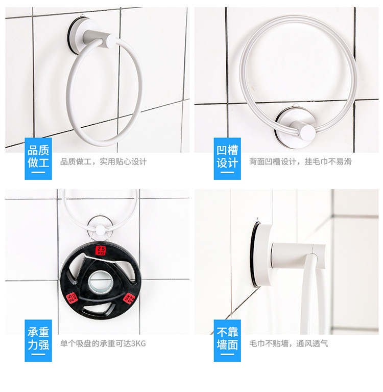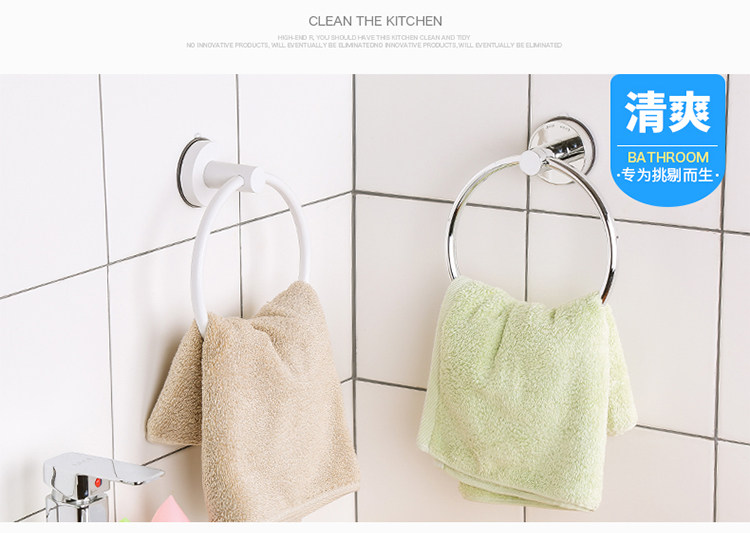 卫生间吸盘圆环毛巾架免打孔毛巾杆置物架浴室挂毛巾的架子