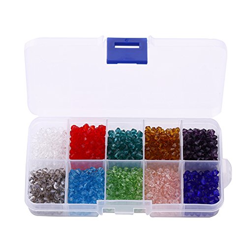 Bingcute DIY 4mm 1000Pcs Faceted Bicone Crystal Glass Beads #5302 with Container Box For Making Jewelry