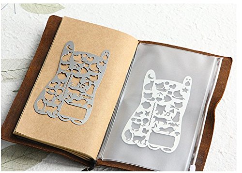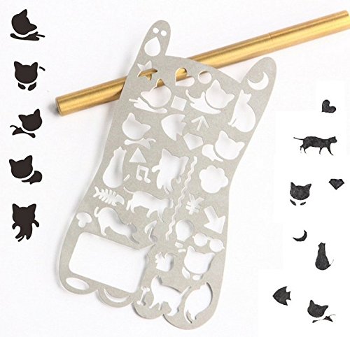 Chris-Wang Portable Adorable Cat Kitten Icon Stainless Steel Paper Stencil Drawing Template for Diy Photo Album, Travel Journal, Diary, Personal Planner and More (13.3x7.3cm)