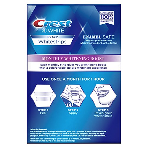 In just 1 hour once a month, Crest 3D White Monthly Whitening Boost White strips will keep your smile brilliantly white. These strips provide the boost you need to keep your smile white all year long.