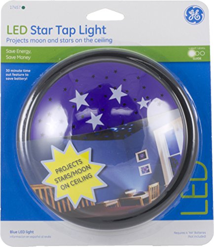 GE LED Star Tap Light, Projects Moon and Stars on the Ceiling, Tap On/Off, Battery Operated, 30 Minute Time Out Feature, Ideal for Kid’s Rooms and Play Rooms, 17457