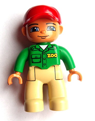 -. Title : L.E.G.O Duplo Mann, rote Kappe, beige Beine, grünes Shirt mit Zoo- Aufdruck.