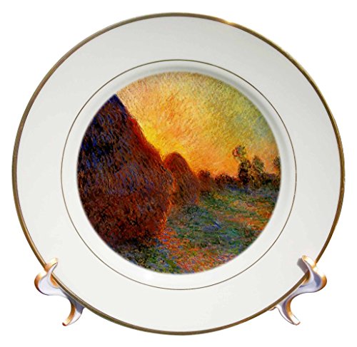 3dRose cp_204014_1 Print of Monet Vintage Grain Stacks Painting - Porcelain Plate, 8"